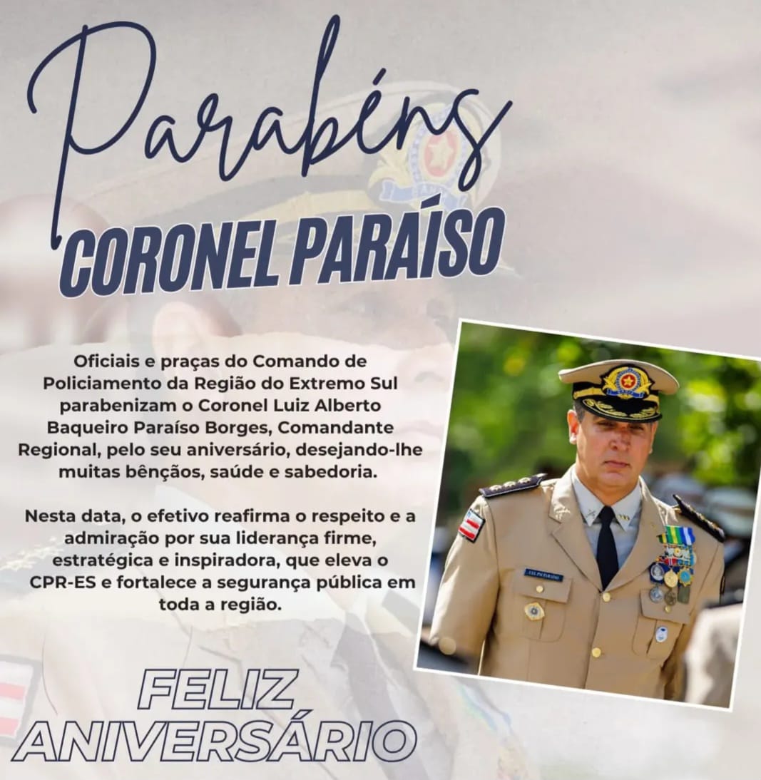 Eu não poderia, de maneira alguma, deixar de “parabenizar” o senhor coronel Luís Alberto Baqueiro Paraíso…